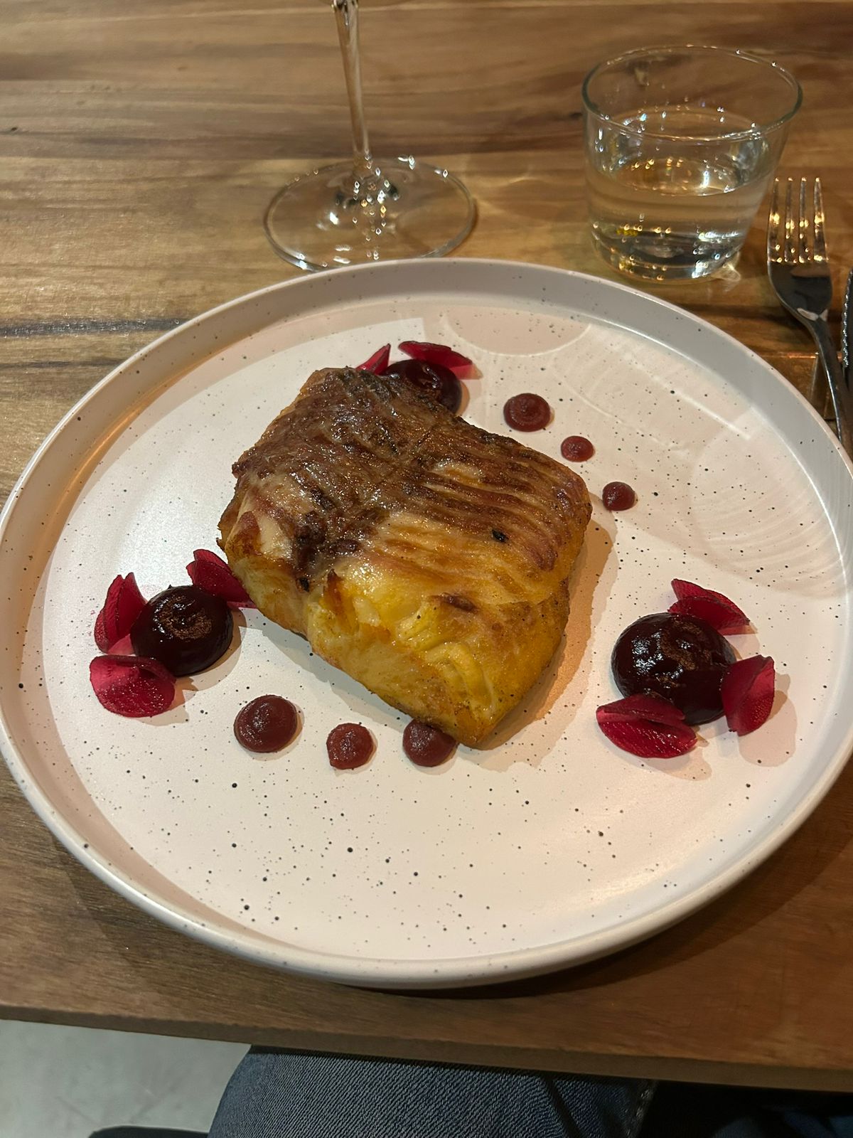 La propuesta es de autor, con especial protagonismo del pescado trabajado con técnicas precisas y presentaciones delicadas.